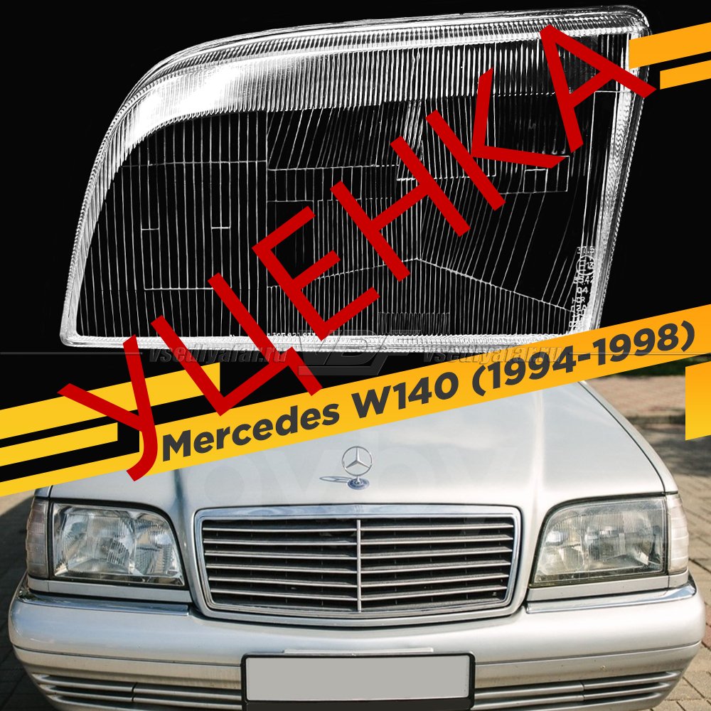 Уцененное стекло для фары Mercedes W140 (1994-1998) Левое №1