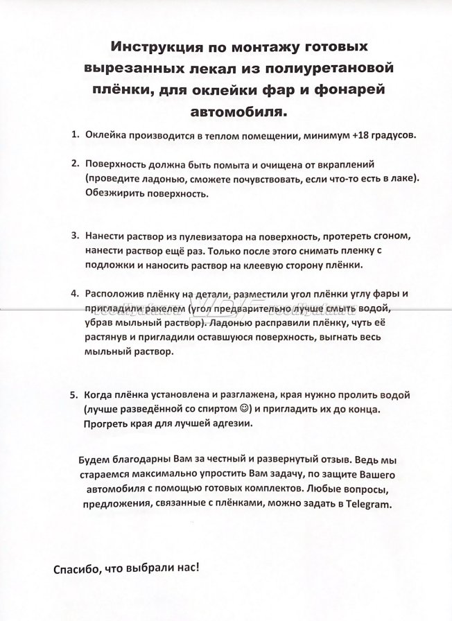 ПЛЁНКА ДЛЯ БРОНИРОВАНИЯ ФАР