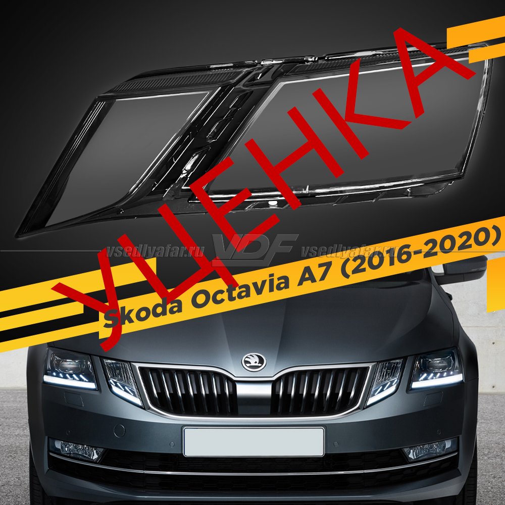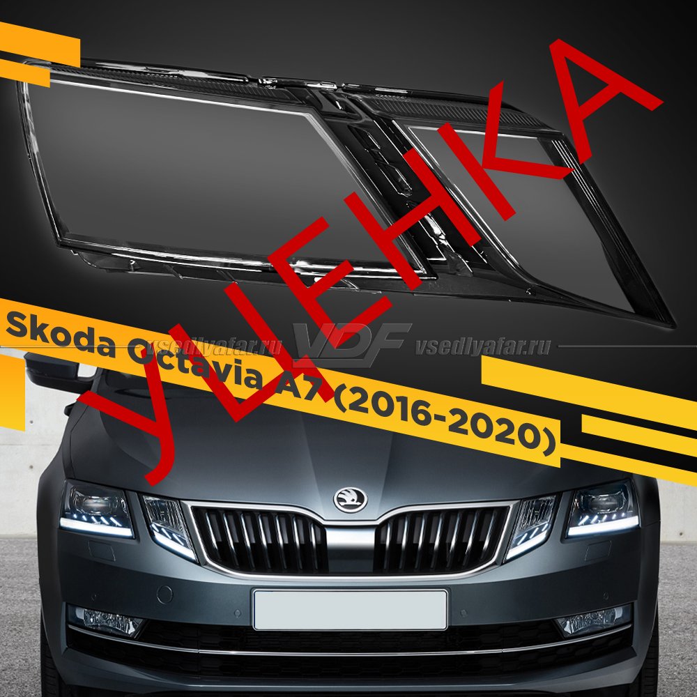 УЦЕНЕННОЕ стекло для фары Skoda Octavia A7 (2016-2020) Правое №7