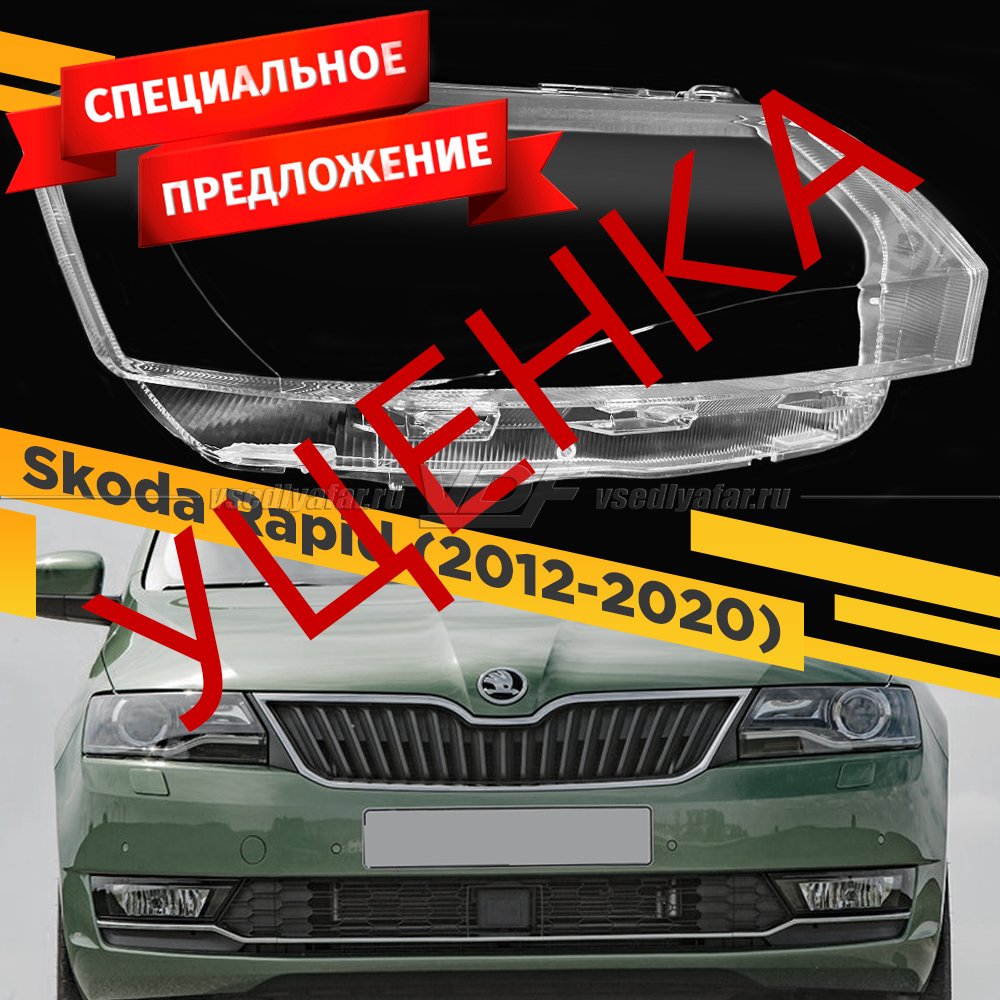 УЦЕНЕННОЕ стекло для фары Skoda Rapid (2019-2023) Левое №1