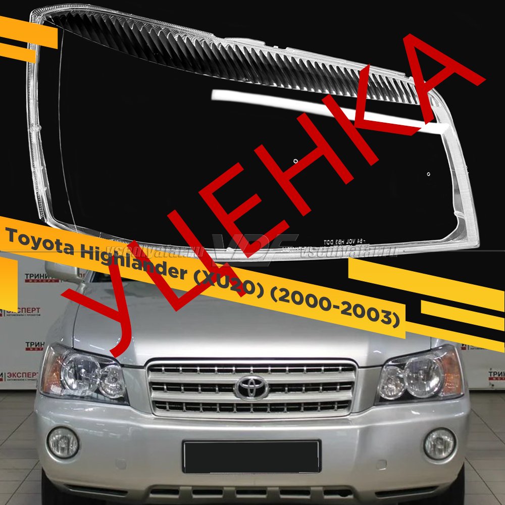 УЦЕНЕННОЕ стекло для фары Toyota Highlander (XU20) (2000-2003) Правое №1