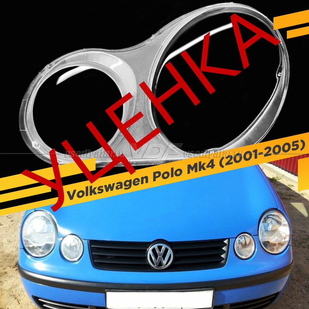 УЦЕНЕННОЕ стекло для фары Volkswagen Polo Mk4 (2001-2005) Левое №1