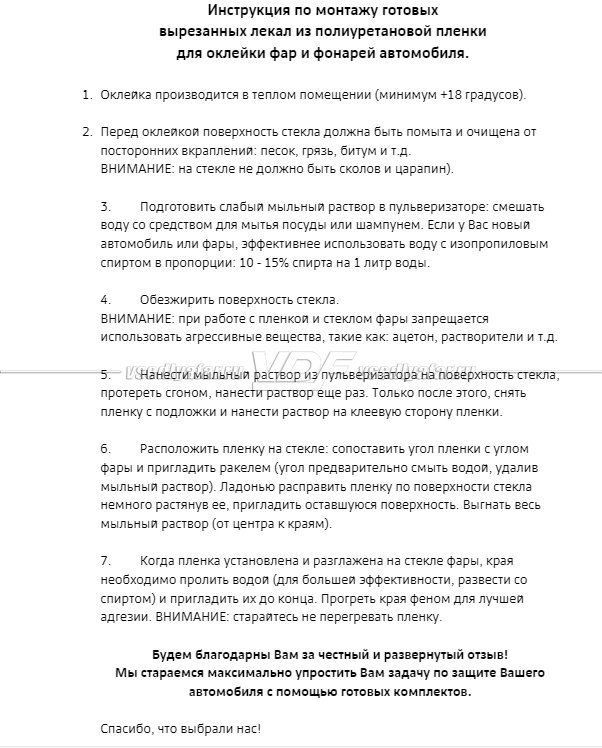 ПЛЁНКА ДЛЯ БРОНИРОВАНИЯ ФАР