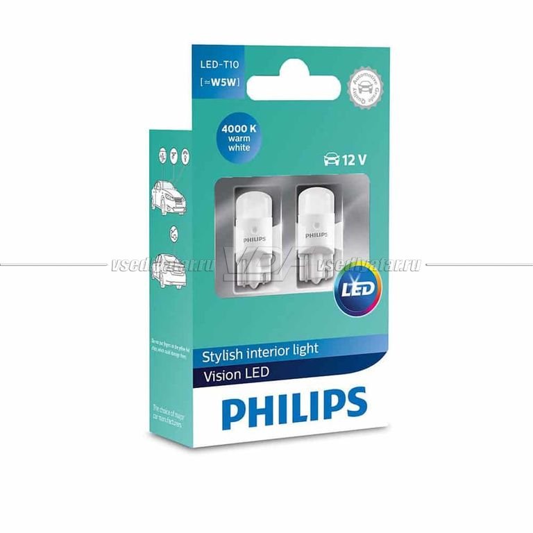 Светодиодные лампы PHILIPS T10 X-tremeUltinon LED 4000K, 2 шт. 127994000KX2