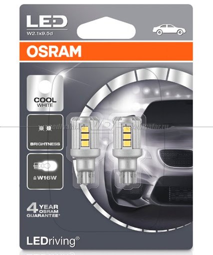 Светодиодные лампы OSRAM W16W (W2.1x9.5d) LED Standart Cool White 6000K, 2шт, 1…