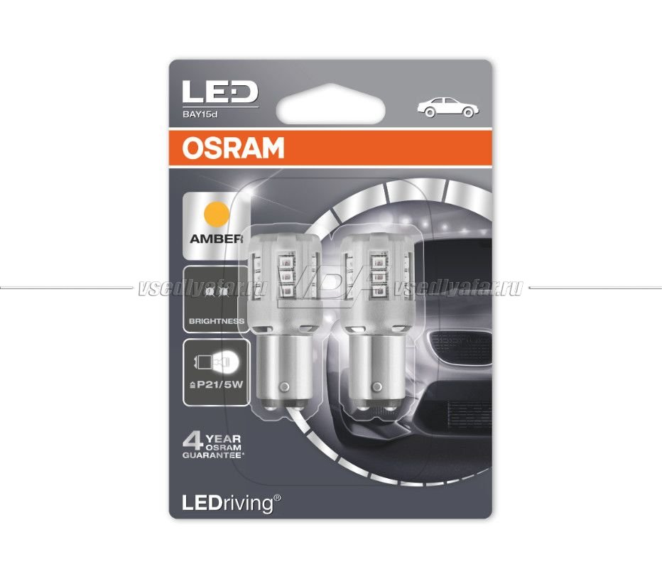 Светодиодные лампы OSRAM LEDRIVING P21/5W Amber 12V, 2шт., 1457YE-02B
