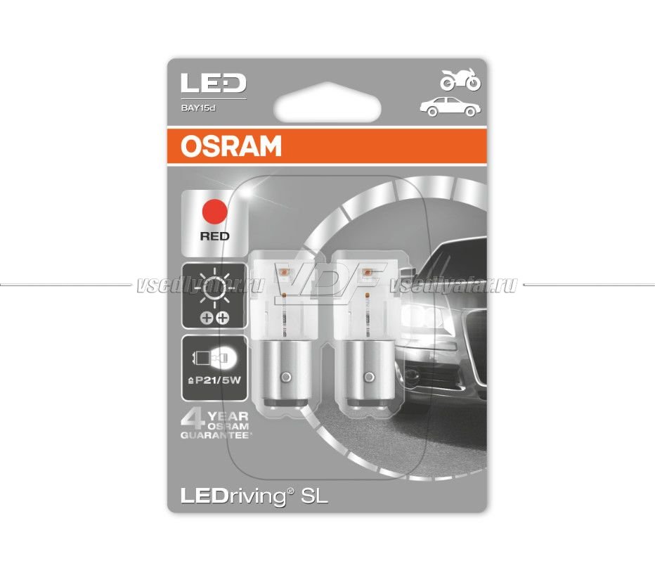 Светодиодные лампы OSRAM LEDRIVING P21/5W RED 12V, 2шт., 1458R-02B
