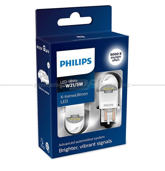 Светодиодные лампы PHILIPS W21/5W 12V LED White X-tremeUltinon LED, 2шт., 11066…