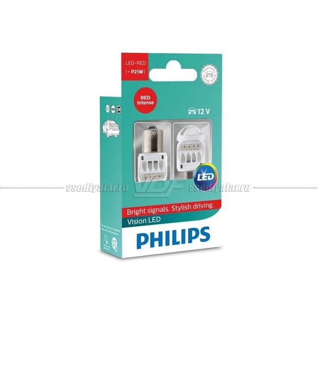 Светодиодные лампы PHILIPS LED P21W 12V-21W BA15s RED 2шт., 12839REDX2