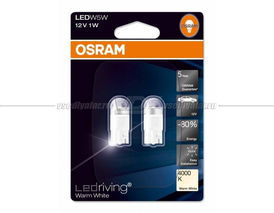 Светодиодные лампы OSRAM LED Premium Warm White W5W 12V 1W, 2шт, 2850WW-02B