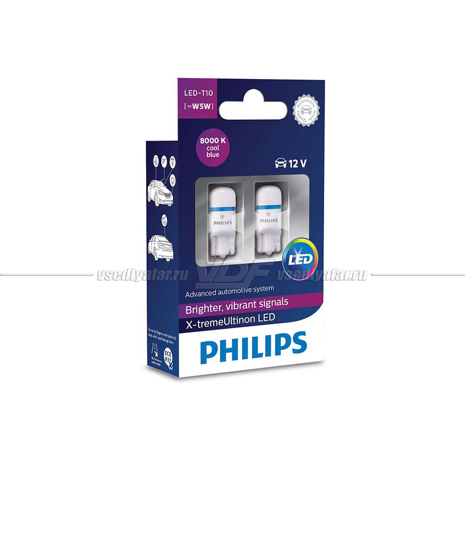 Светодиодные лампы PHILIPS T10 X-tremeUltinon LED 8000K, 2 шт, 127998000KX2