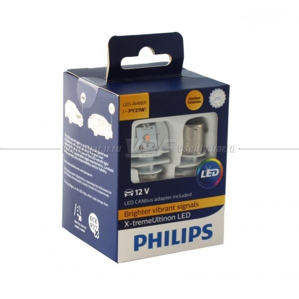 Светодиодные лампы PHILIPS X-treme Ultinon LED PY21W с обманками, 12V, 2 +2 шт.…