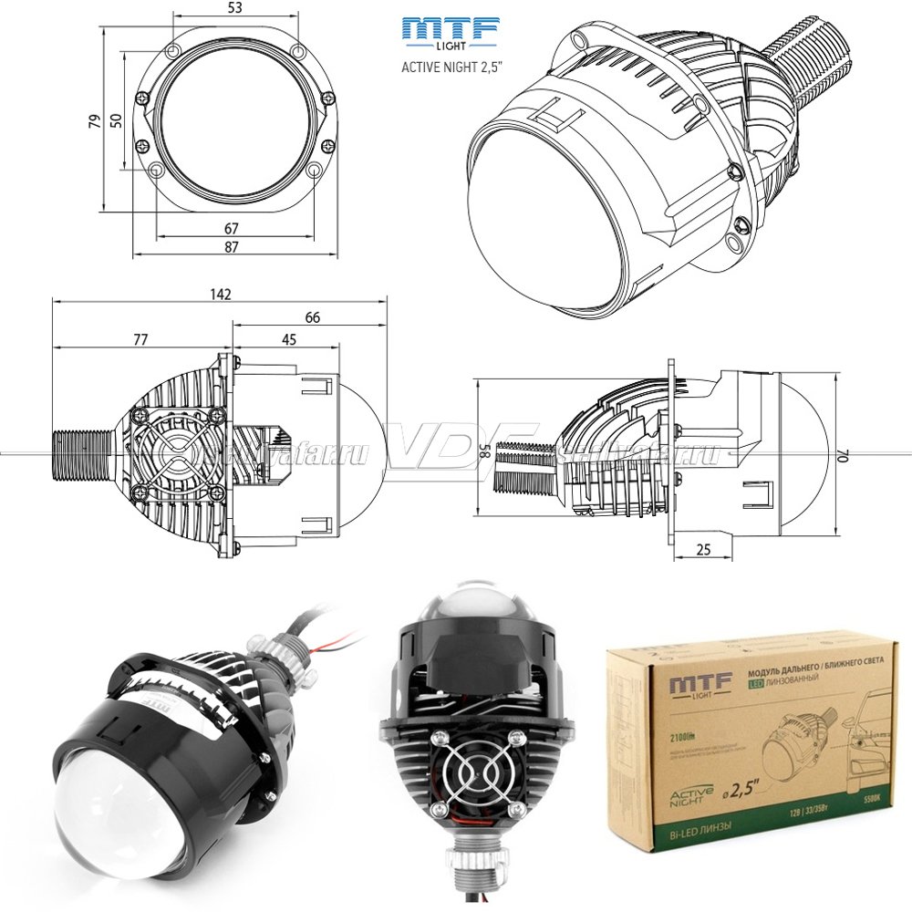 Светодиодные линзы MTF Light Active Night LED 2,5″ 5500K Bi-Led (комплект 2 шт)…