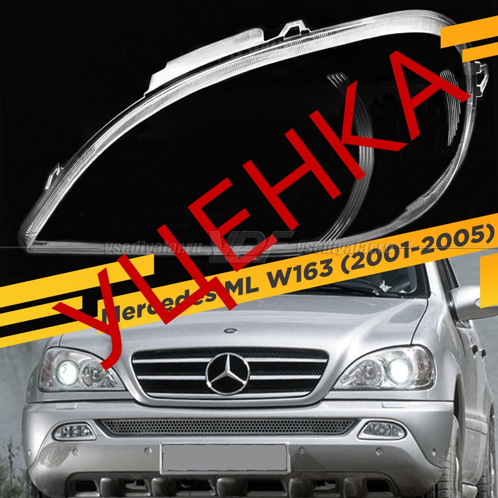 Стекло для фары Mercedes ML W163 (2001-2005) Левое УЦЕНЕННОЕ №1
