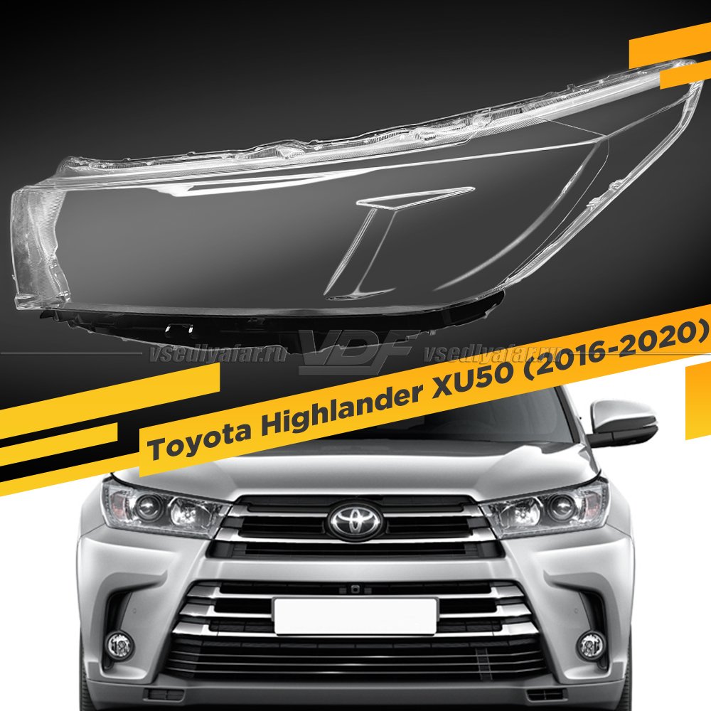 Стекло для фары Toyota Highlander (XU50) LED (2016-2020) Правое