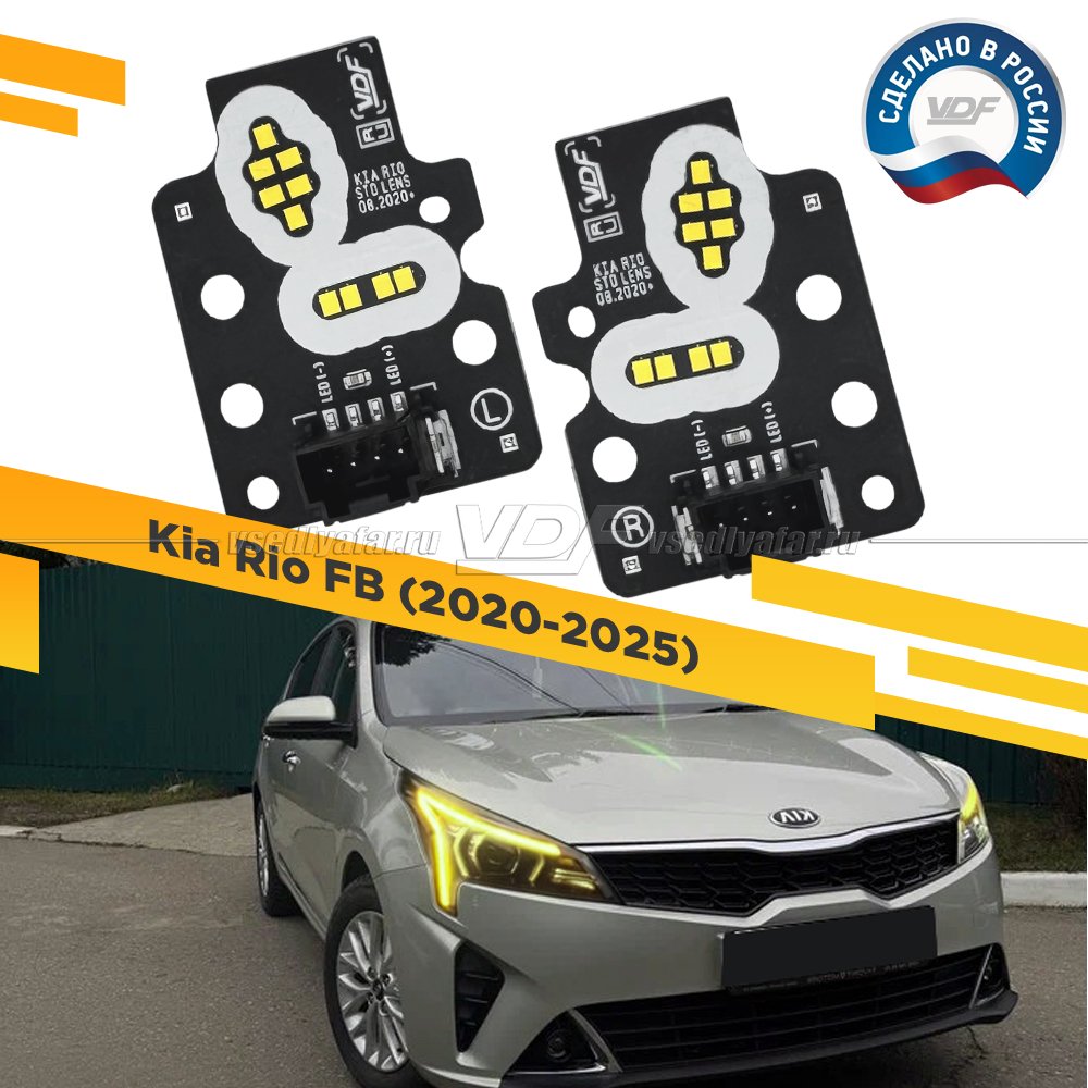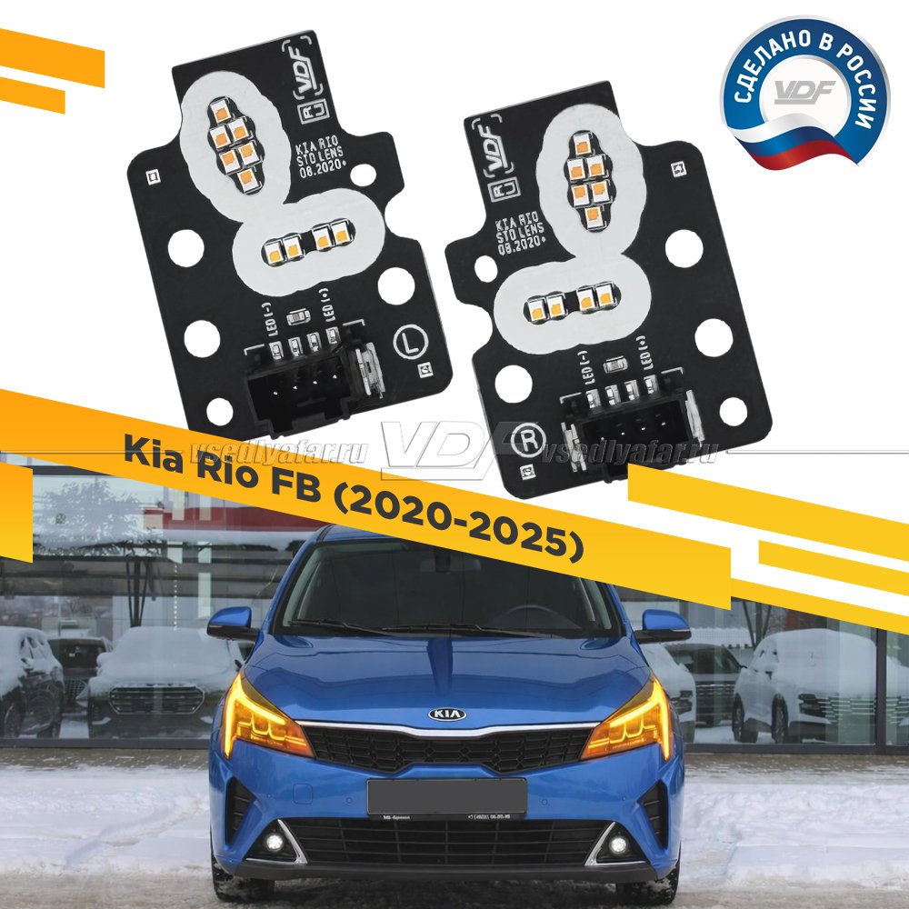 Комплект плат светодиодной Ресницы Kia Rio 2020-2025 Цвет: Янтарный