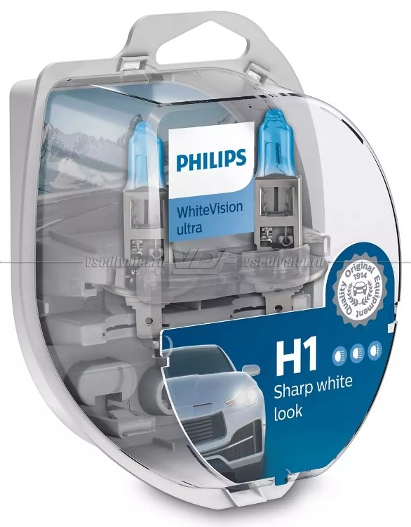 Лампа галогенная PHILIPS H1 White Vision ultra 3700K 12V 55W + W5W 12V-5W, по 2…