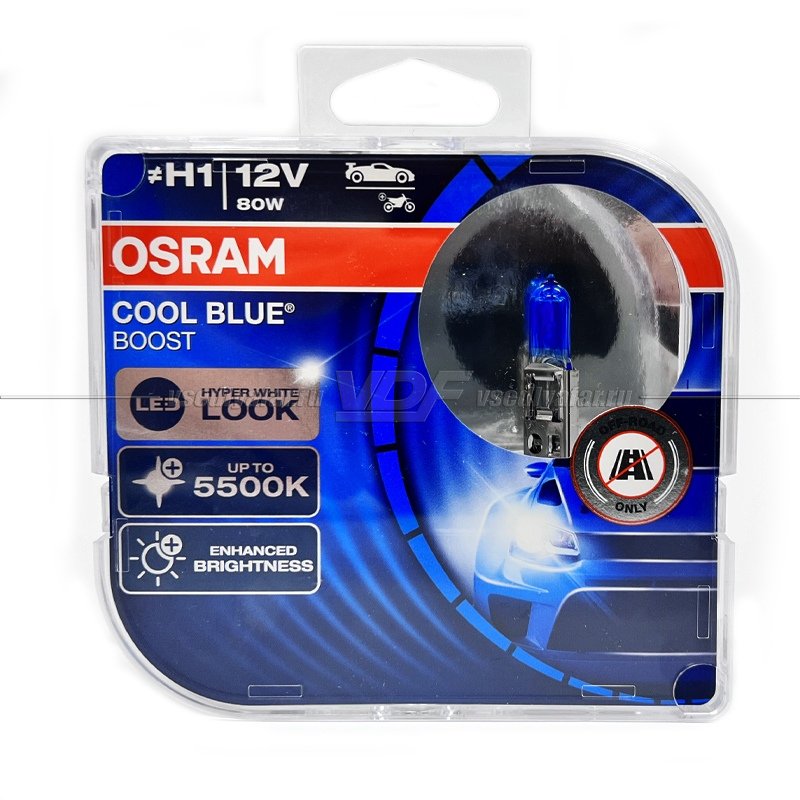 Лампа галогенная OSRAM H1 Cool Blue Boost 12V 80W, 2шт, 62150CBB-HCB