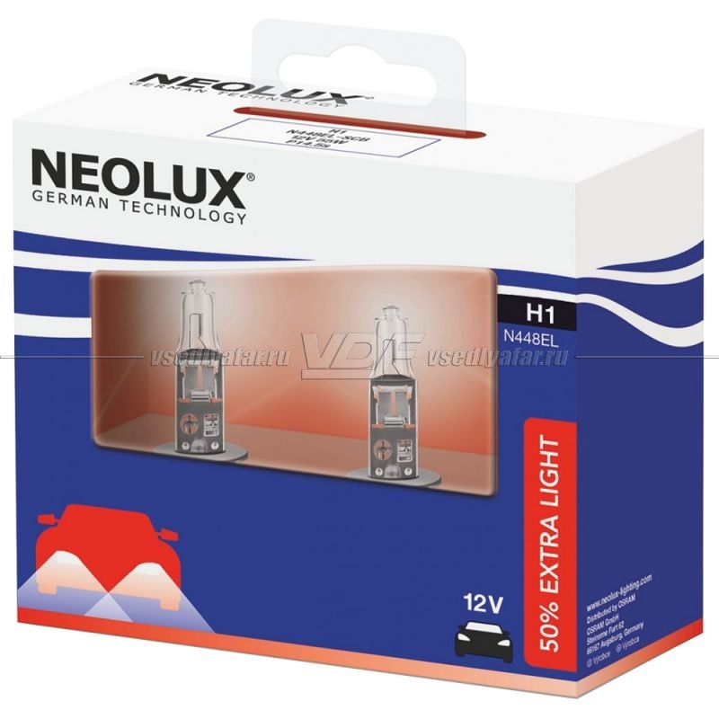Лампа галогенная Neolux Neolux H1 12V-55W (+50% света) Extra Light DuoBox, 2 шт…
