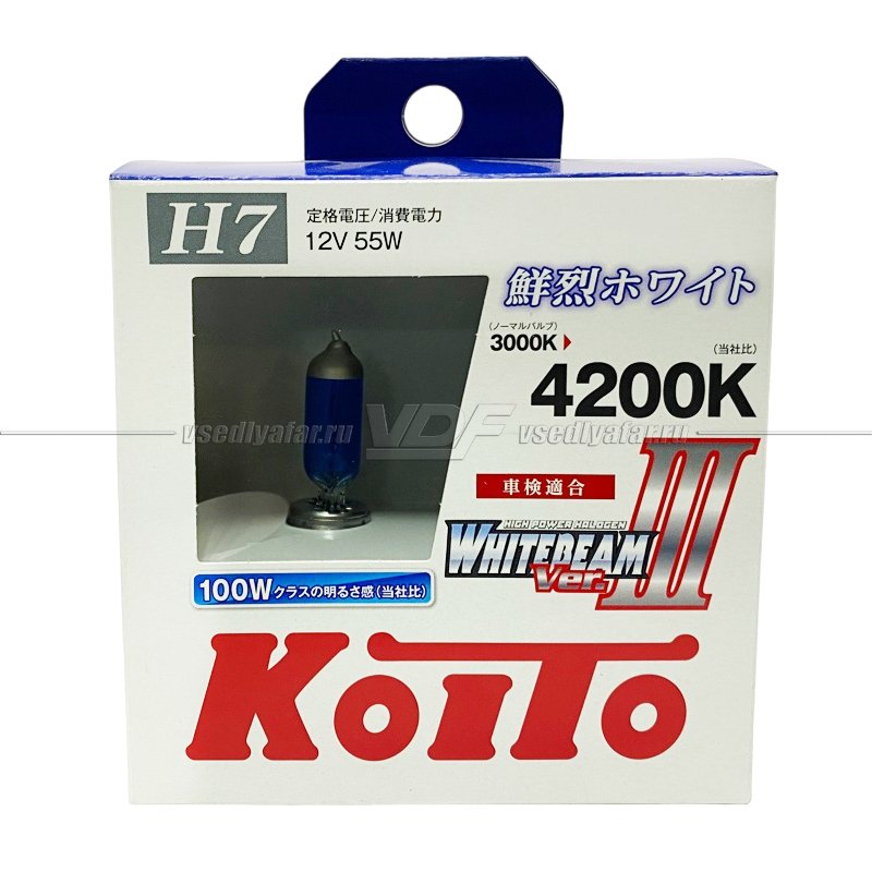 Лампа галогенная Koito Whitebeam H7 12V 55W (100W) 4200K (комплект 2 шт.)