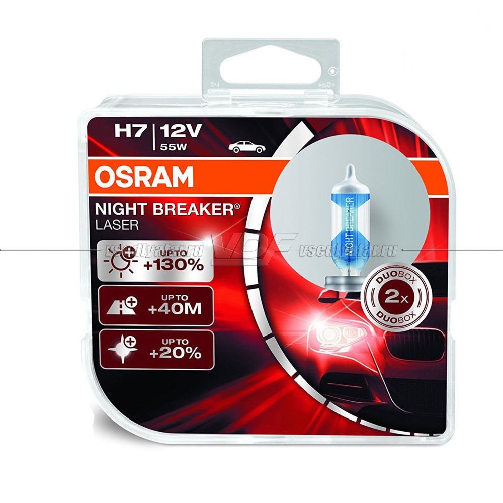 Лампа галогенная OSRAM H7 Night Breaker Laser 12V 55W, 2шт., 64210NL-HCB