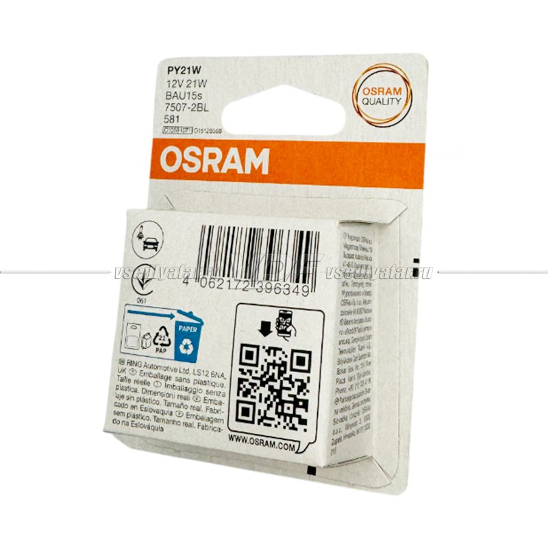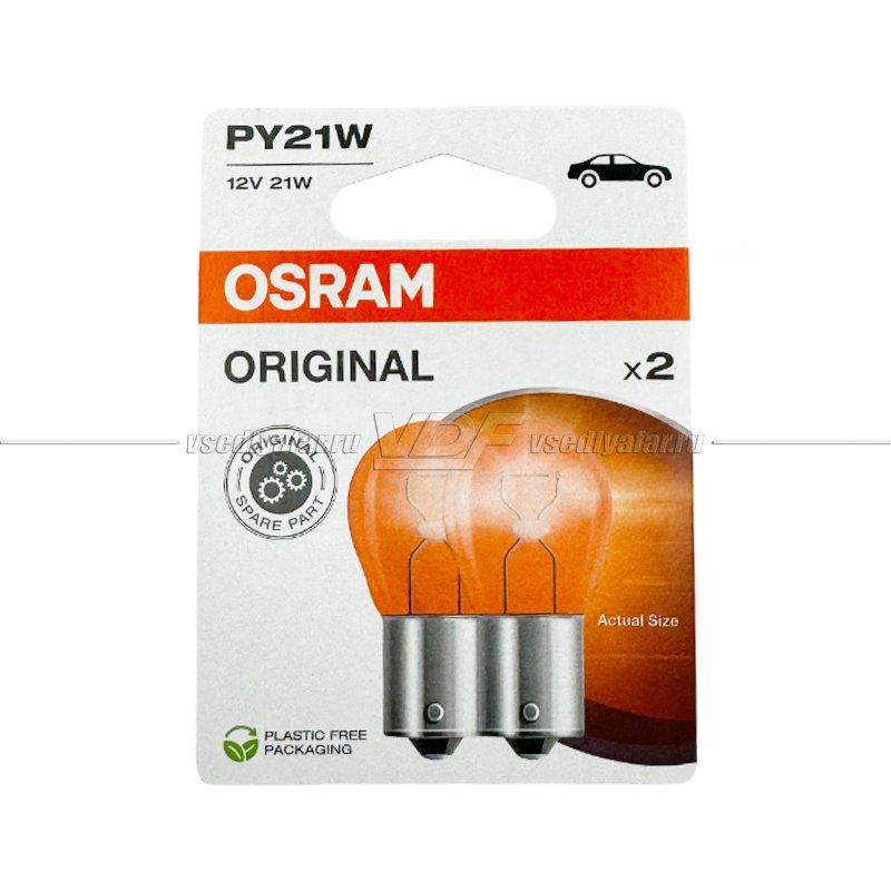 Лампа галогенная OSRAM PY21W Original Line 2шт, 12V, 7507-2BL
