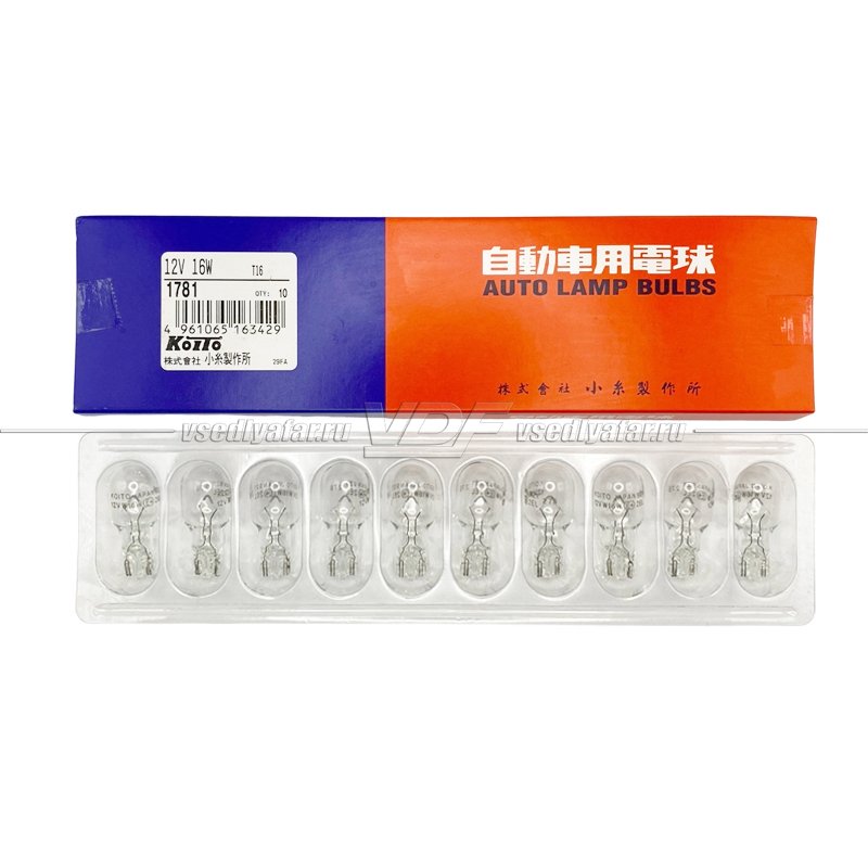 Лампа галогенная Koito W16W 10шт, 12V, 16W, 1781