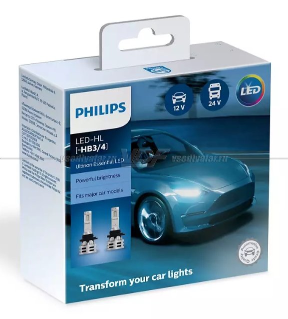 Лампа светодиодная PHILIPS HB3/HB4 Ultinon Essential LED 6500K, 2 шт, 11005UE2X2
