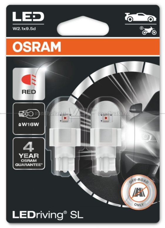 Светодиодные лампы OSRAM Red LEDriving SL W16W 12V-LED 1.4W, 2шт, 921DRP-02B