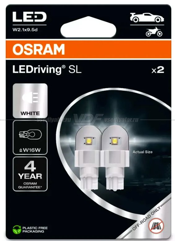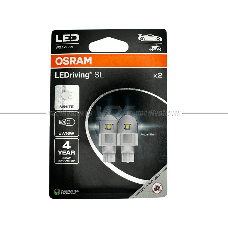 Светодиодные лампы OSRAM Cool LEDriving SL W16W 12V-LED 6000K 2.1W, 2шт, 921DWP…