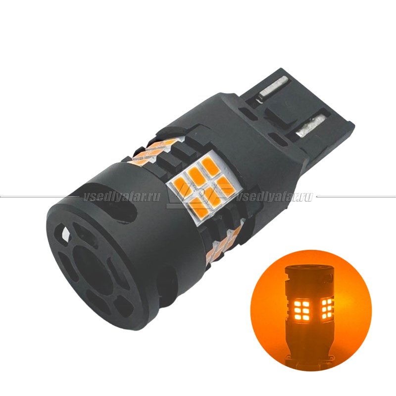 Светодиодная лампа 7440 без полярности с Обманкой 27W (оранжевый), 27W