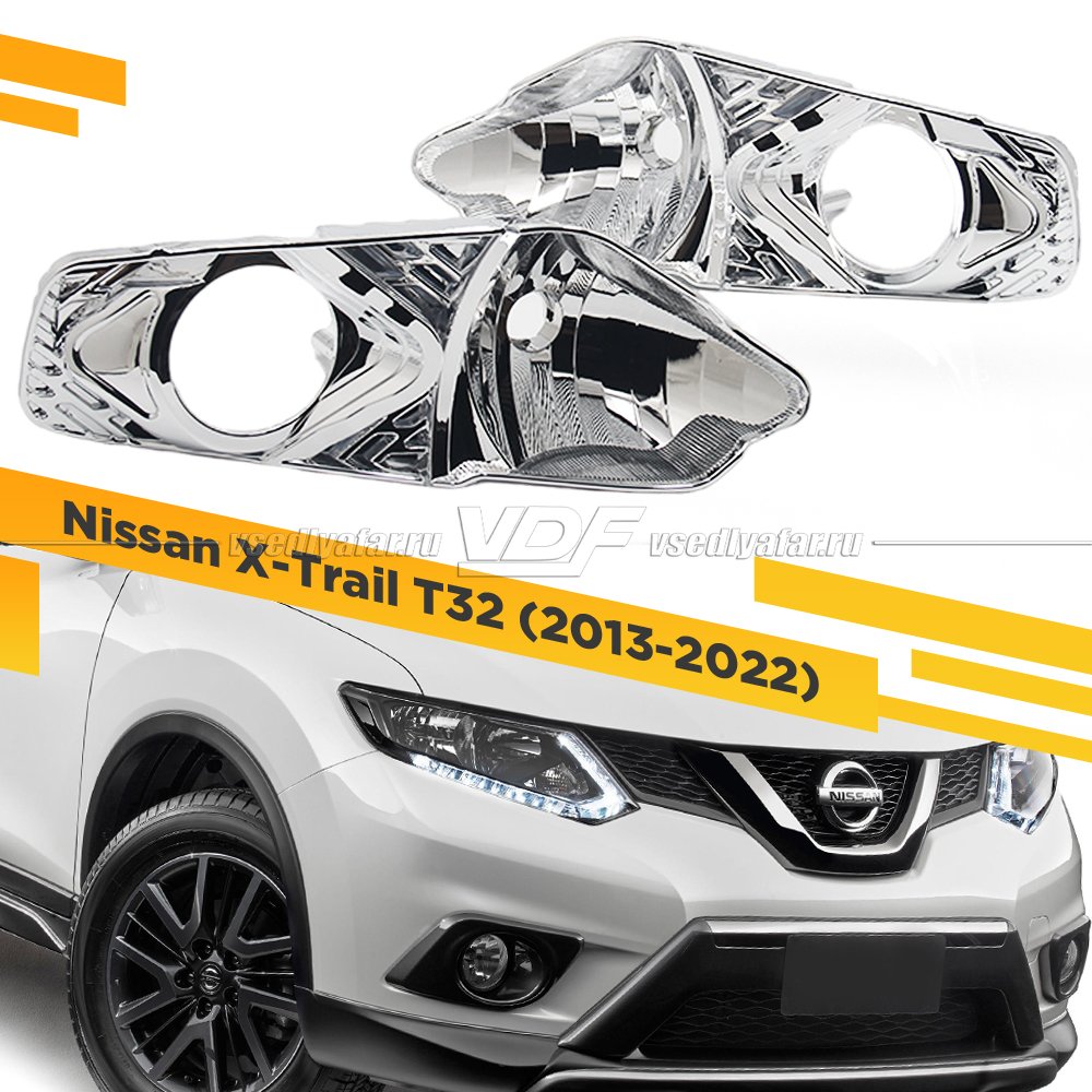 Комплект для установки линз в фары Nissan X-Trail T32 2013-2022 Хром