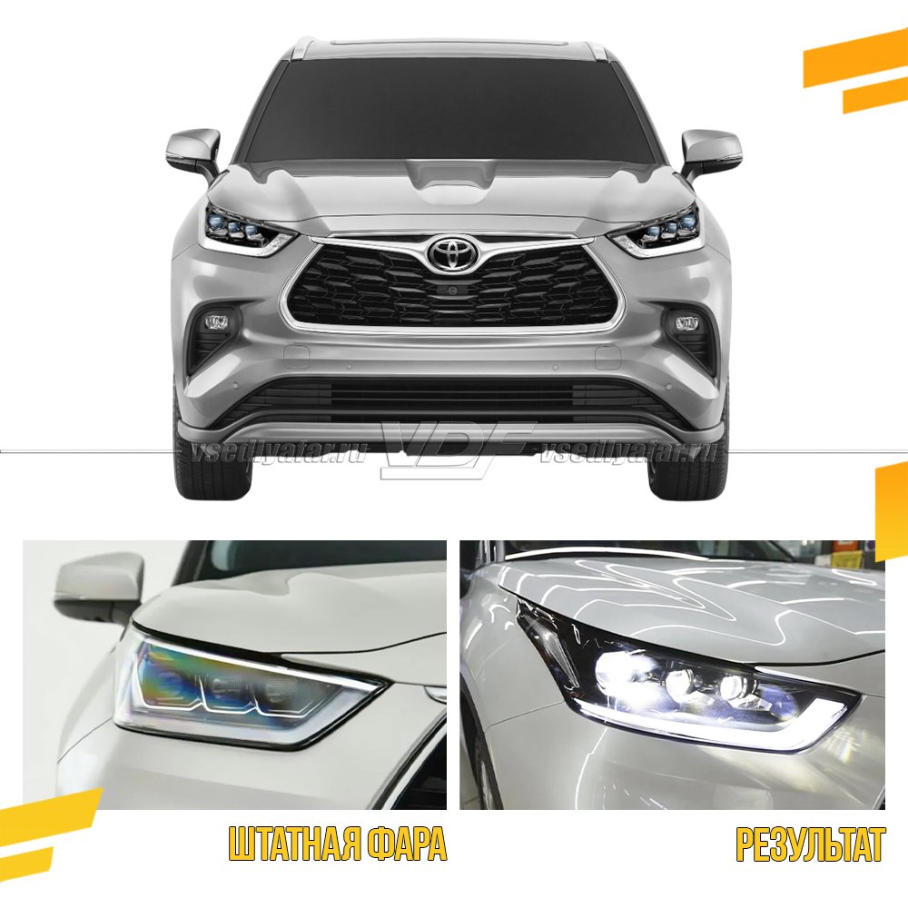 Комплект для установки линз в фары Toyota Highlander 2019-2026 USA