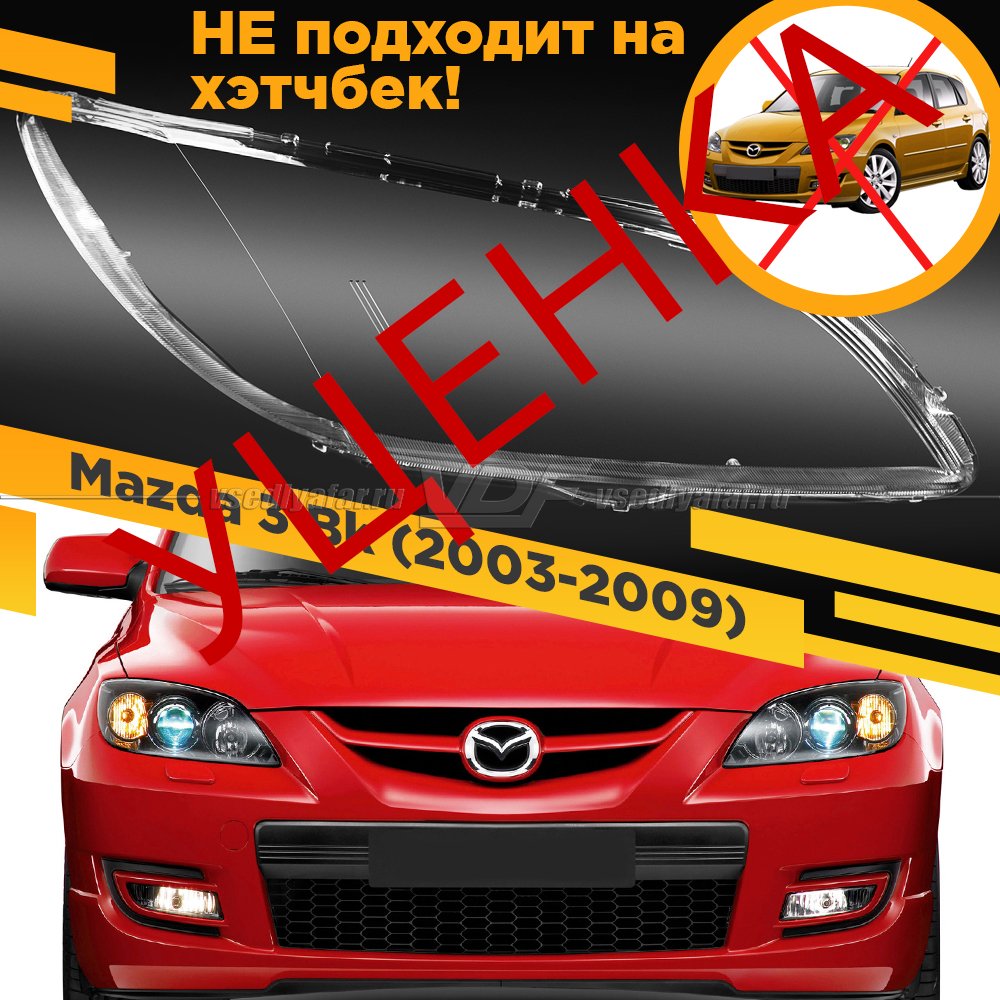 Уцененное стекло для фары Mazda 3 Bk (2003-2009) Седан Правое №12