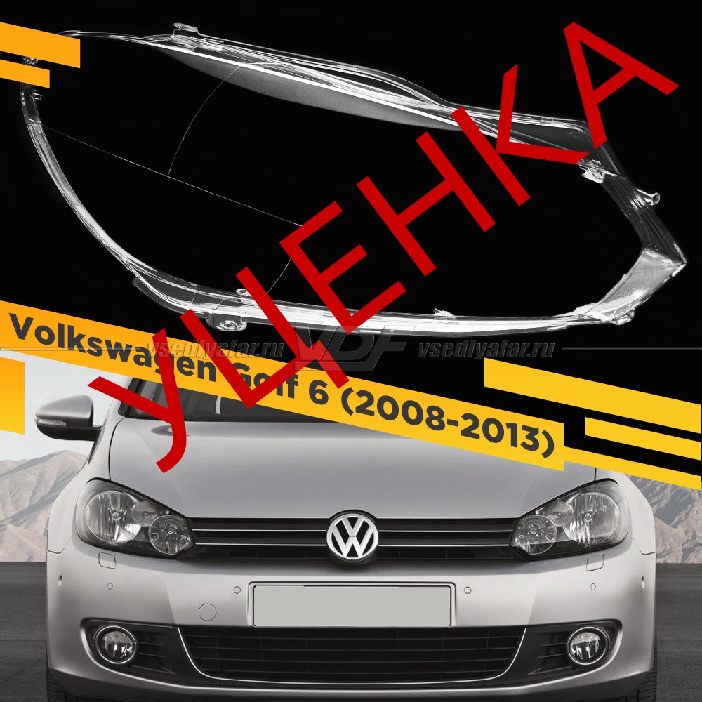 УЦЕНЕННОЕ стекло для фары Volkswagen Golf 6 (2008-2013) Правое Галоген №1