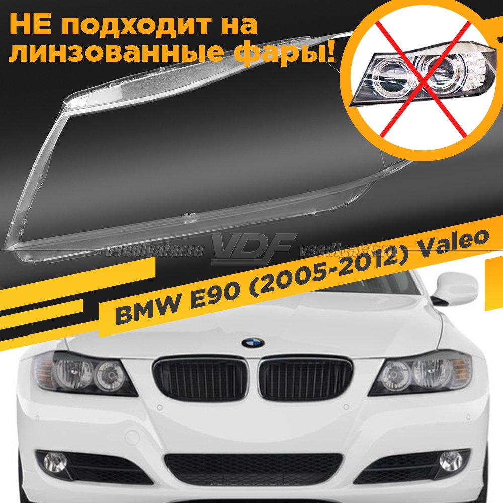 Стекло для фары BMW 3 E90/E91 (2004-2012) Левое Для фар Valeo