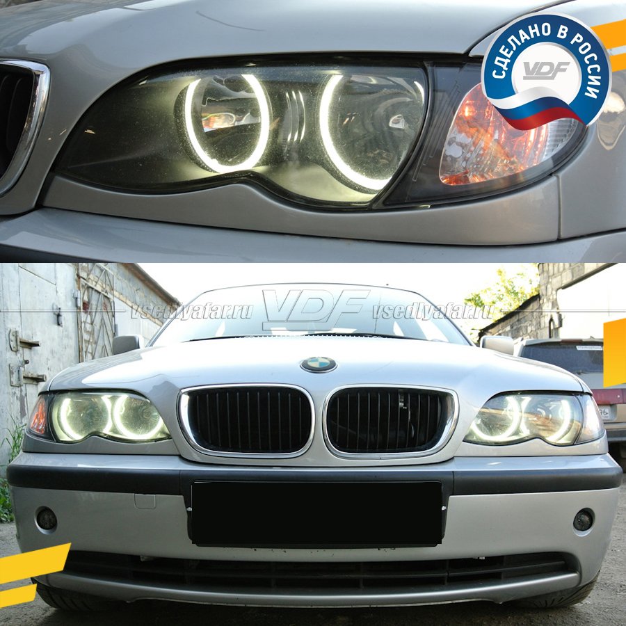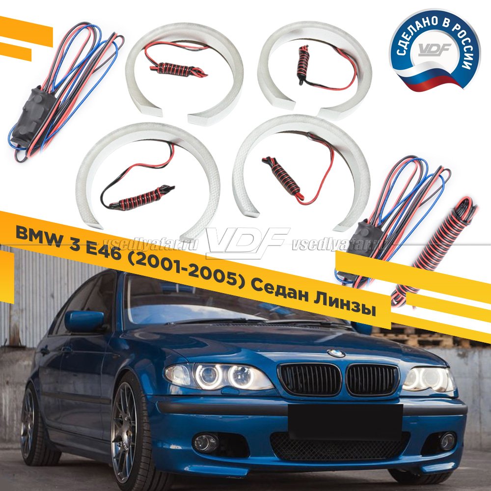 Светодиодные Ангельские глазки BMW 3 E46 2001-2005 Седан Линзы Цвет: Белый