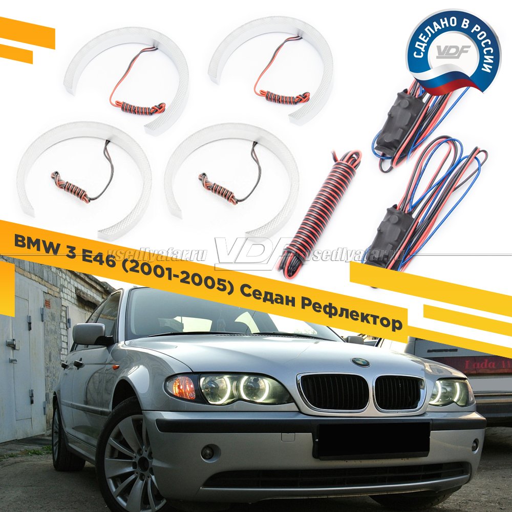 Светодиодные Ангельские глазки BMW 3 E46 2001-2005 Седан Рефлектор Цвет: Белый