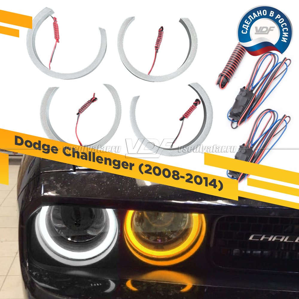 Светодиодные Ангельские глазки Dodge Challenger 2008-2014 Белый/Желтый