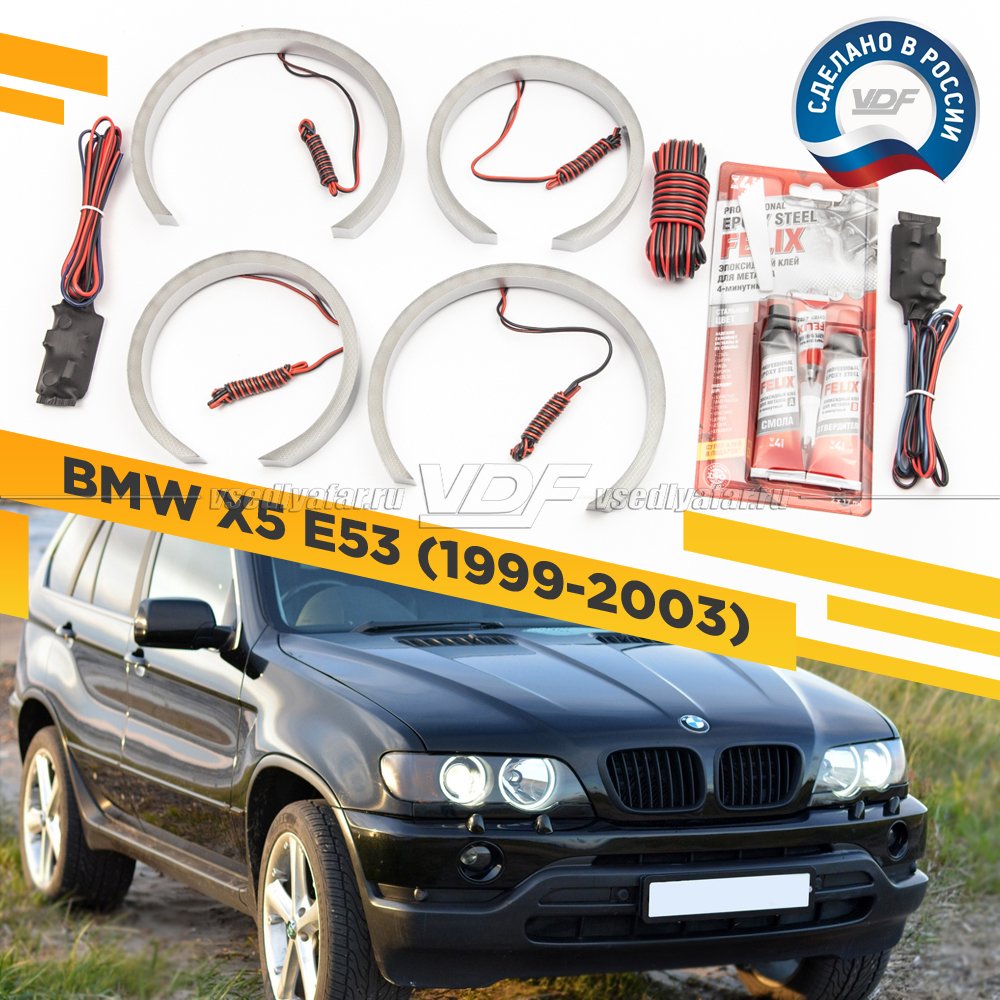 Светодиодные Ангельские глазки BMW X5 E53 1999-2003 Цвет: Белый