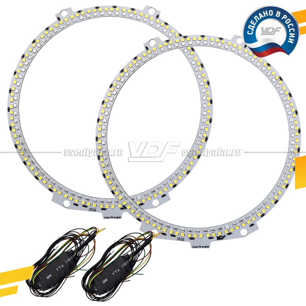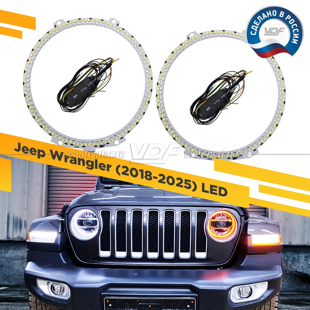 Светодиодные Ангельские глазки Jeep Wrangler 2018-2025 LED Двухрежимные