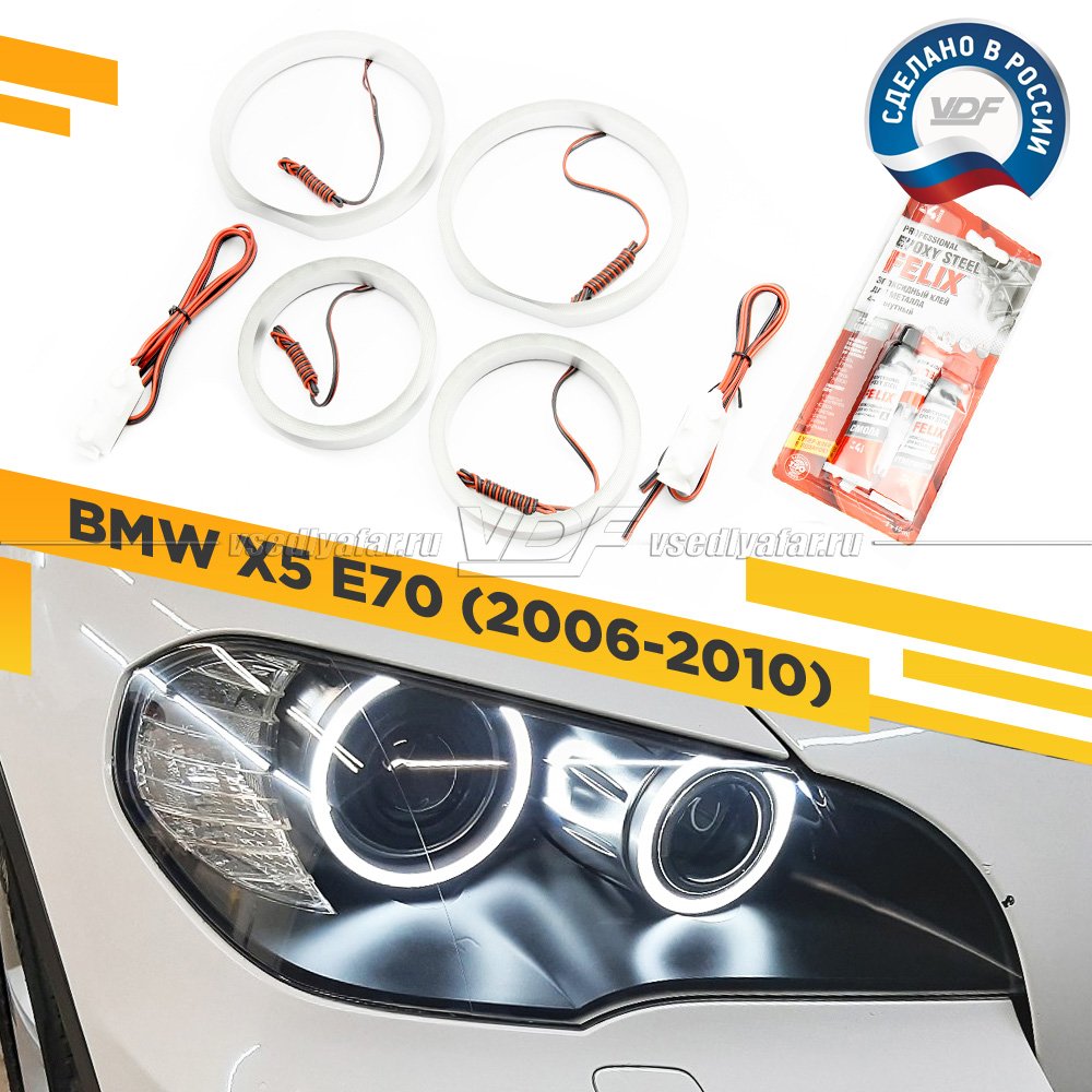 Светодиодные Ангельские глазки BMW X5 E70 2006-2010 Цвет: Белый