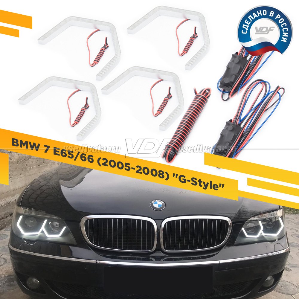 Светодиодные Ангельские глазки BMW 7 Е65 2005-2008 "G-Style" Цвет: Белый