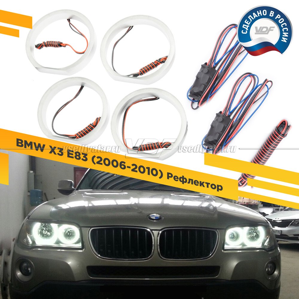 Светодиодные Ангельские глазки BMW X3 E83 2006-2010 Рефлектор Цвет: Белый