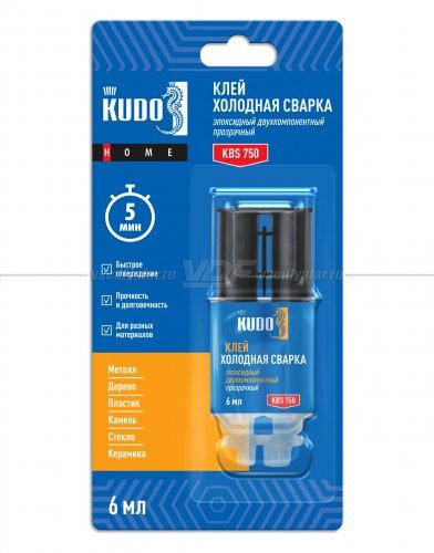 Клей эпоксидный двухкомпонентный прозрачный KUDO HOME, 6 мл