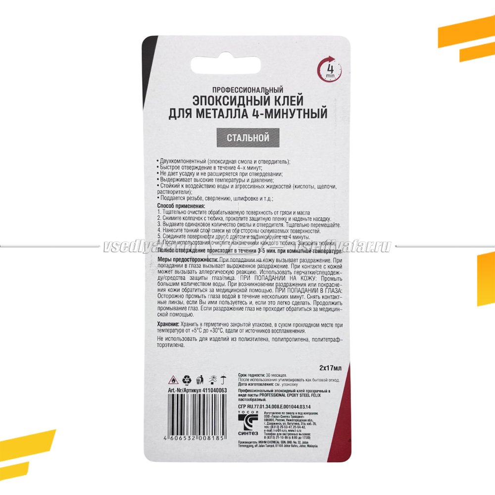 Профессиональный эпоксидный клей для металла Felix (стальной цвет)