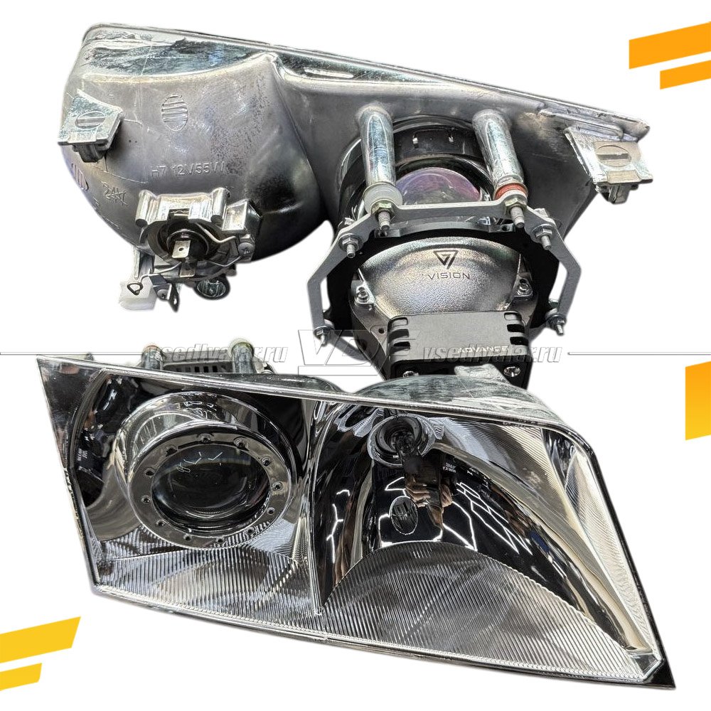 Комплект переходных рамок для замены штатных Галогенных линз на линзы с Креплением "Hella 3": ксеноновые или светодиодные, таких марок как VDF, Aozoom, MTF, Optima, Dixel и тд. в фарах автомобиля Audi A6 С5 (1997-2001)