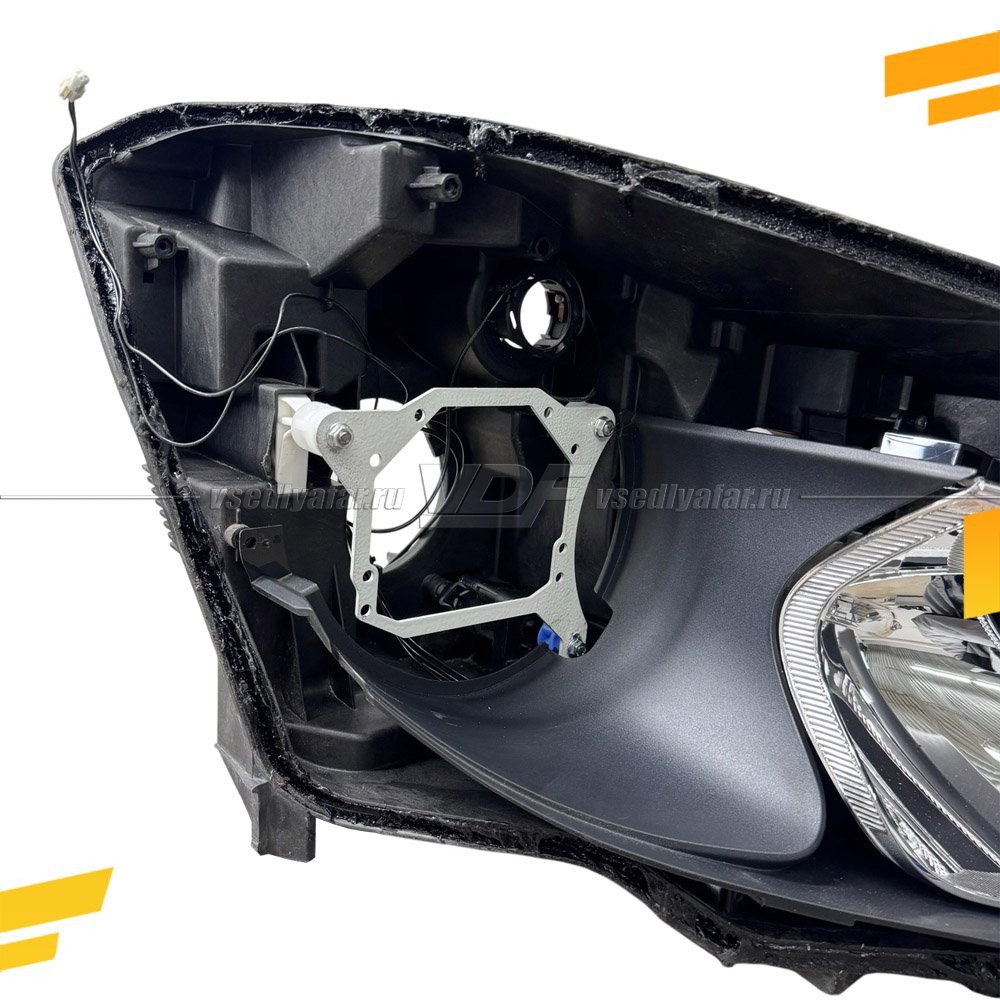 Комплект переходных рамок для установки линз в штатные Галогенные фары Mercedes CLA (2013-2016), возможность установки линз с креплением "Hella 3": ксенон, галоген или светодиодные, таких марок как VDF, Cerida, Aozoom, iphcar, MTF, Optima, Dixel и тд.