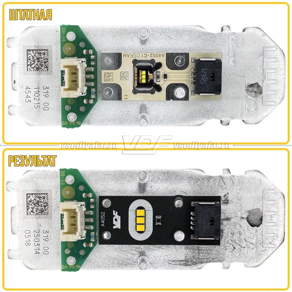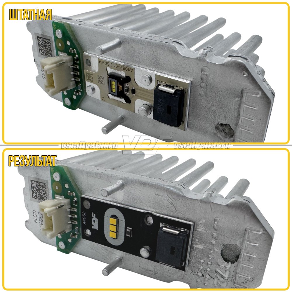 При ремонте фар с оплавленным световодом замена платы обязательно. Новая плата позволяет восстановить полную яркость и стабильную работу ДХО.