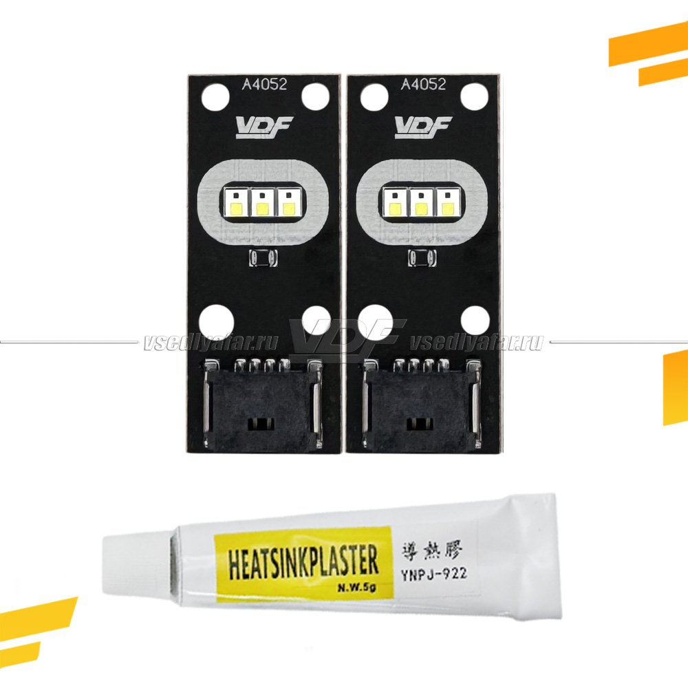 Комплектация: На 2 фары (2 штуки), теплопроводный клей.